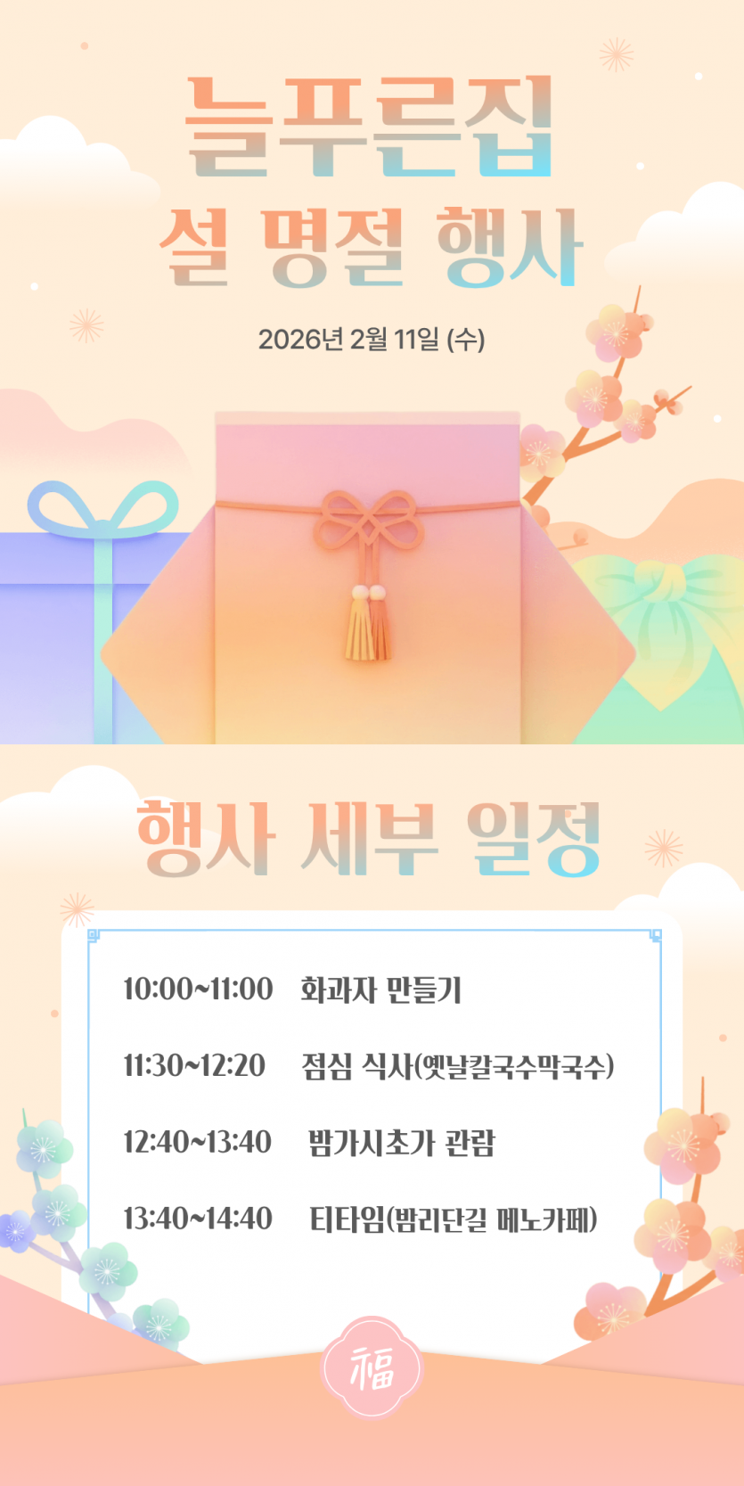 [프로그램] 2026년 설 명절 행사 (화과자 만들기, 일산 밤리단길)