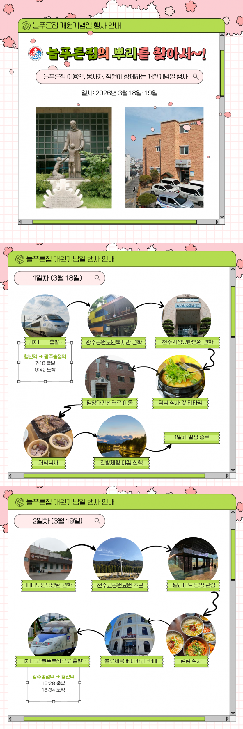 3월 18일부터 19일까지 광주와 담양 일대를 방문하며 뜻깊은 시간과 즐거운 추억을 만들어갈 예정입니다.